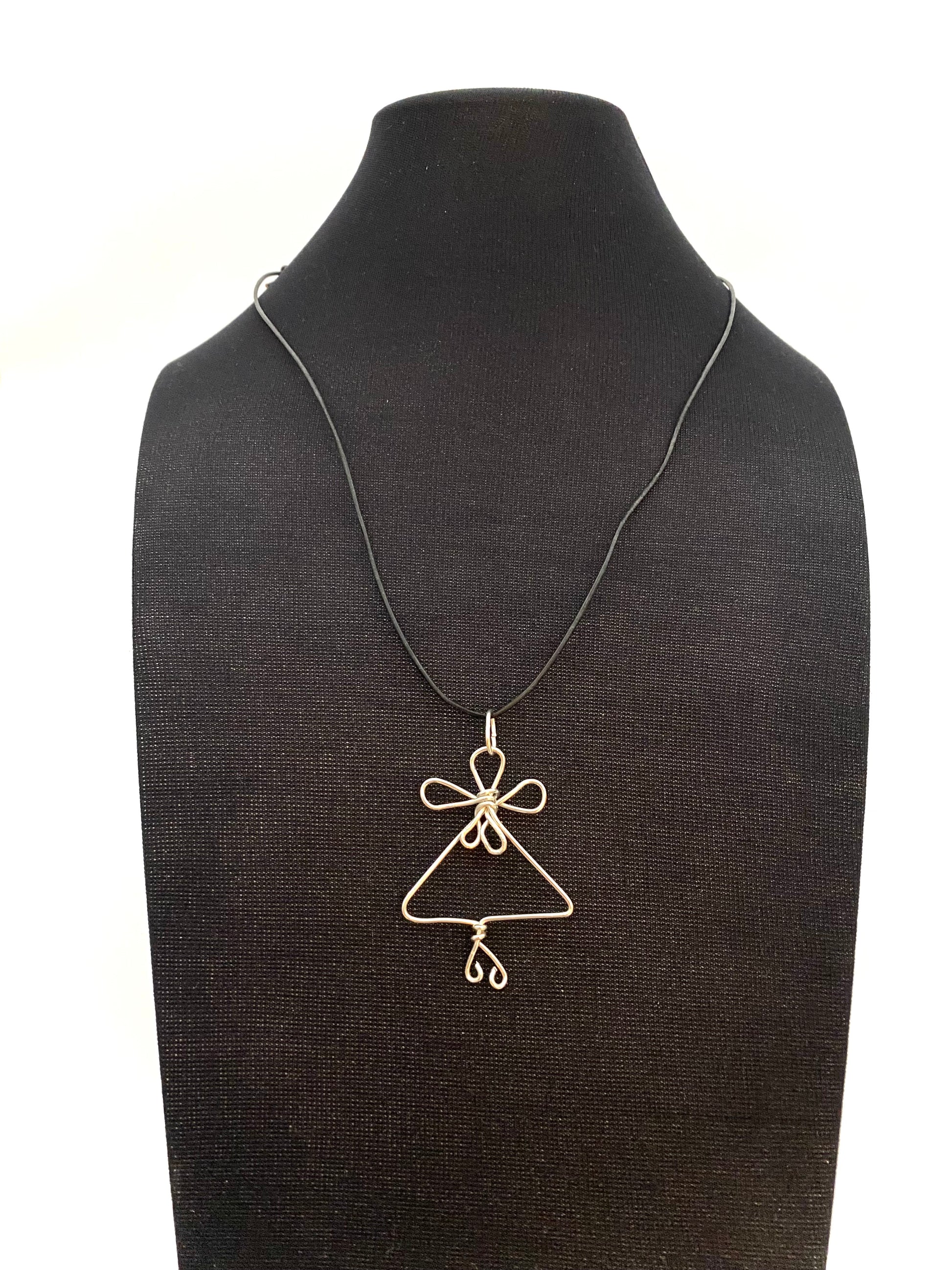 Ängel i 925 silvertråd med boobies. 5.5 cm. hög. Levereras med läderrem i smyckesask.