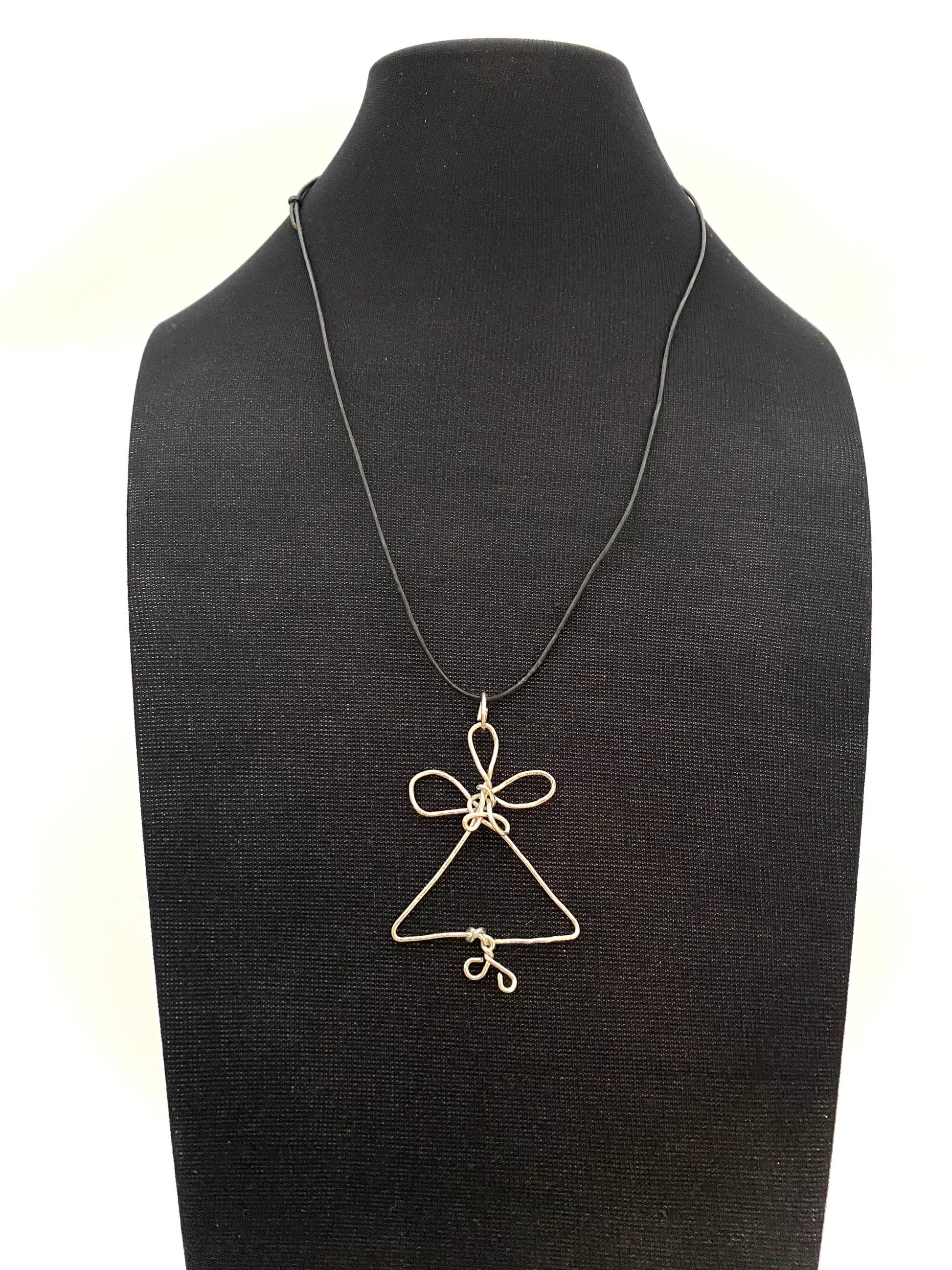 Ängel i 925 hamrad silvertråd med boobies. 6 cm. hög. Levereras med läderrem i smyckesask.