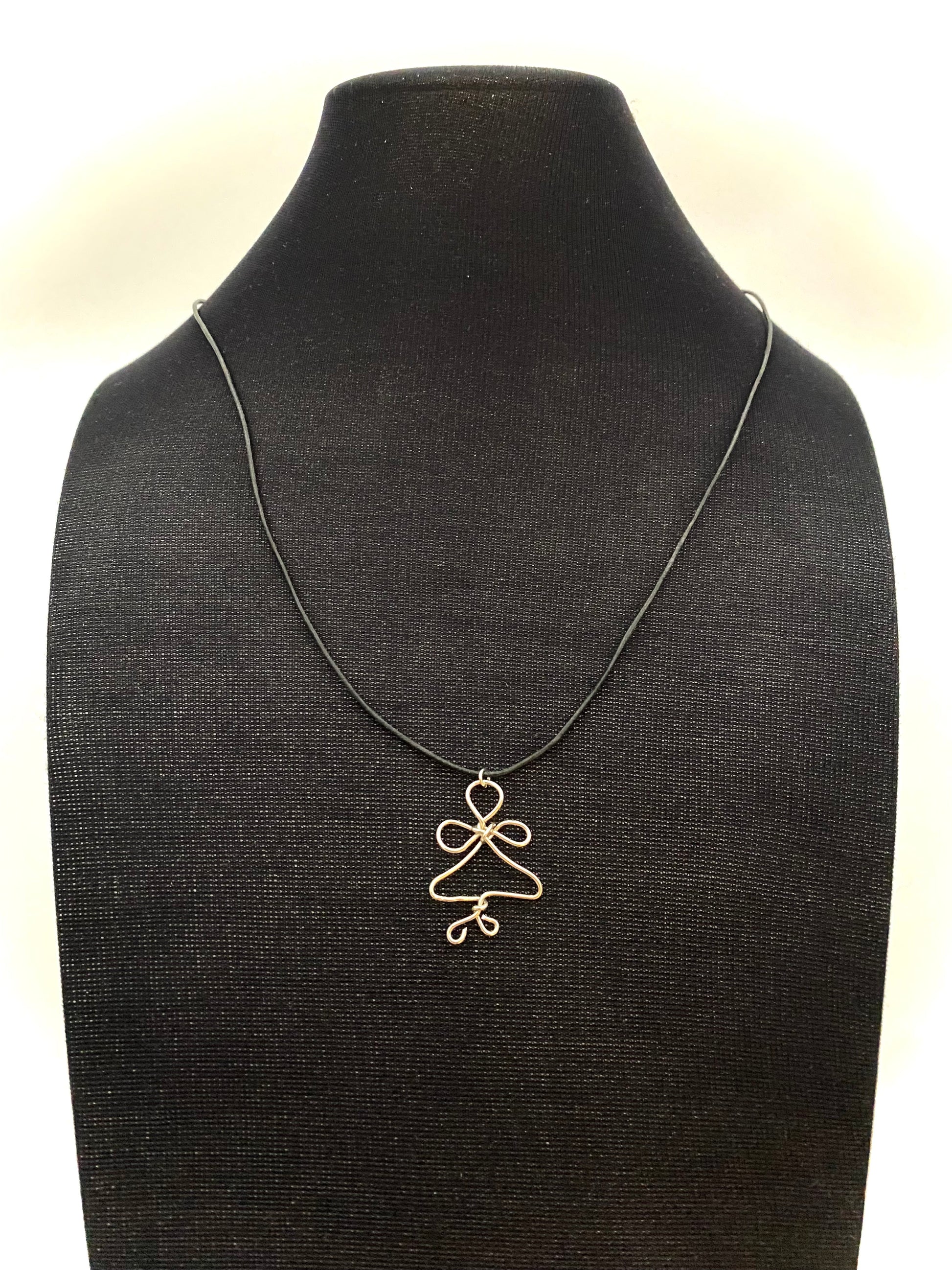 Ängel halsband i 925 silvertråd. 3 cm. hög. Levereras med läderrem i smyckesask.