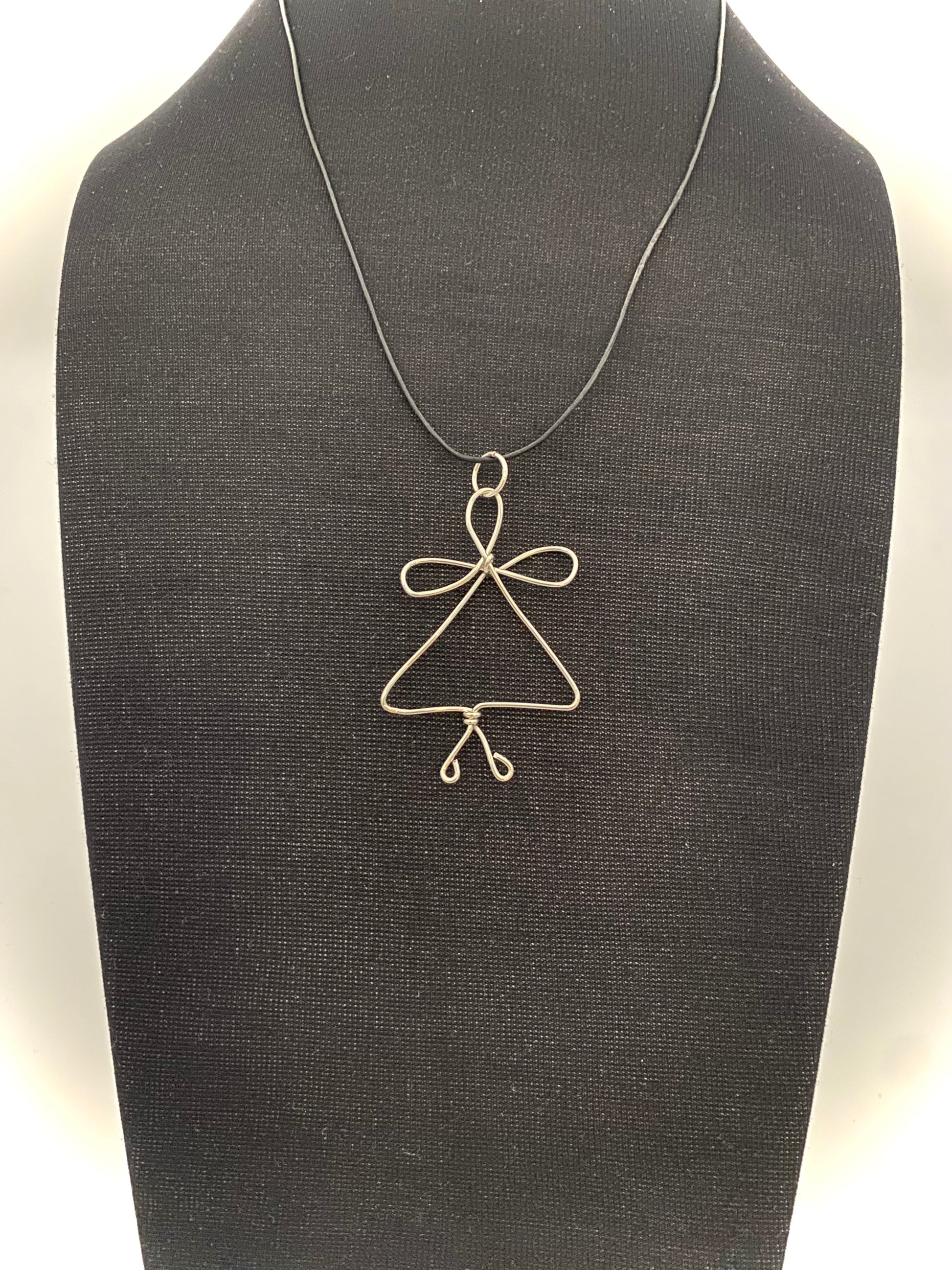 Ängel med 925 silvertråd. 6 cm. hög. Levereras med läderrem i smyckesask.