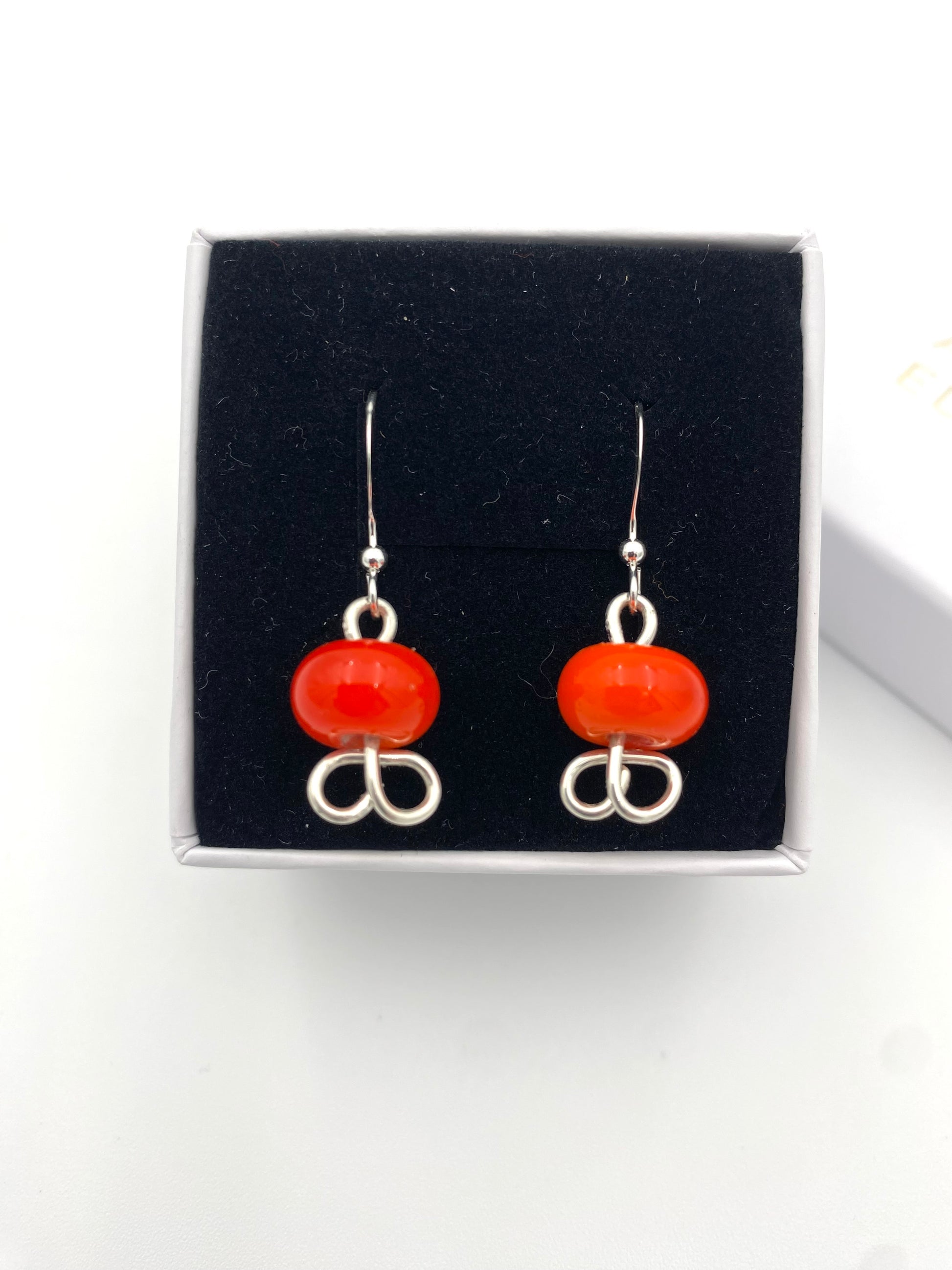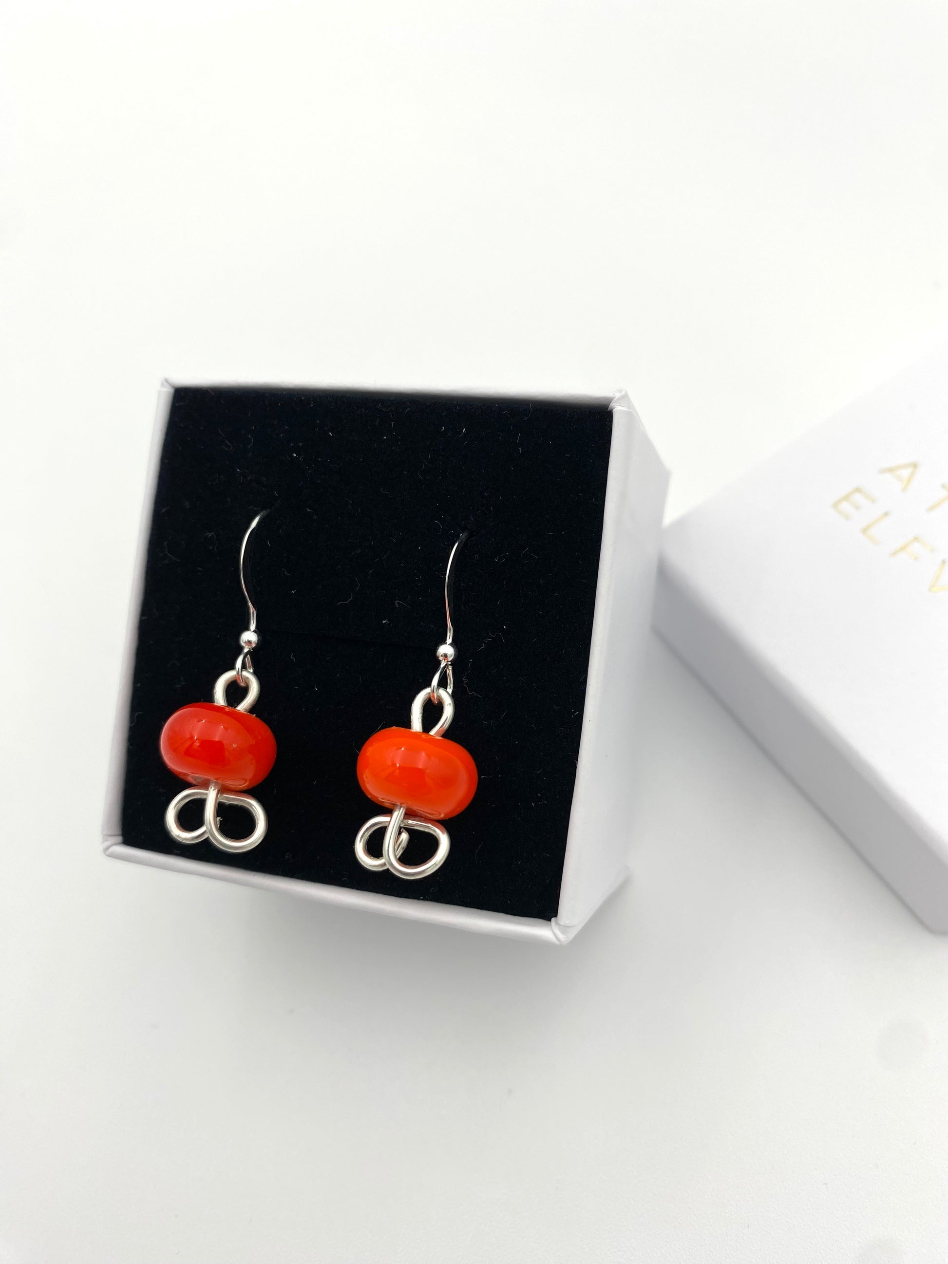 Orangea pärlor. Hänge med pärlan cirka 3 cm. lång. Obs! Pärlan är mer orange än vad bilden visar.