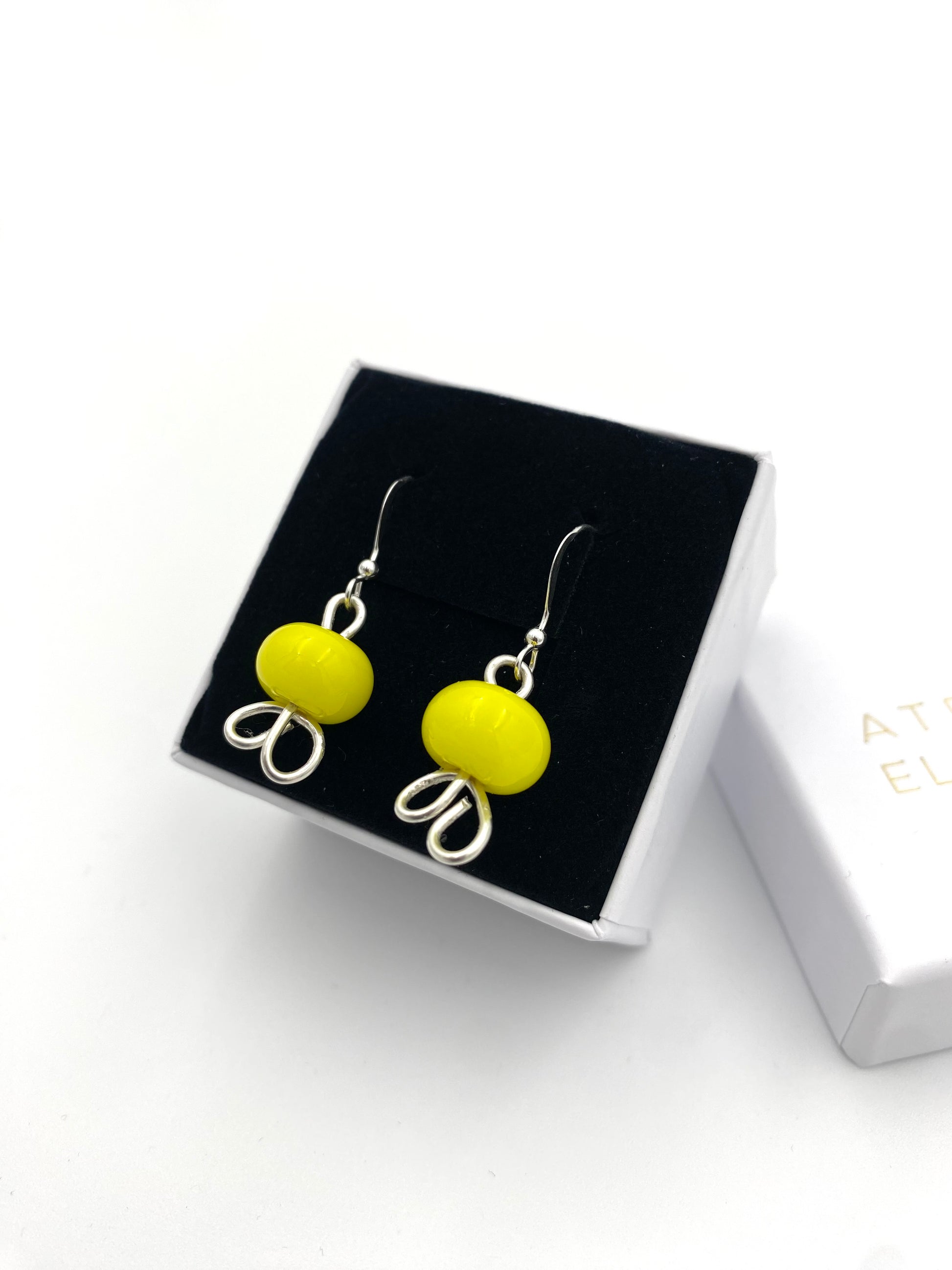 Örhängen i 925 silver med lampworkpärlor.