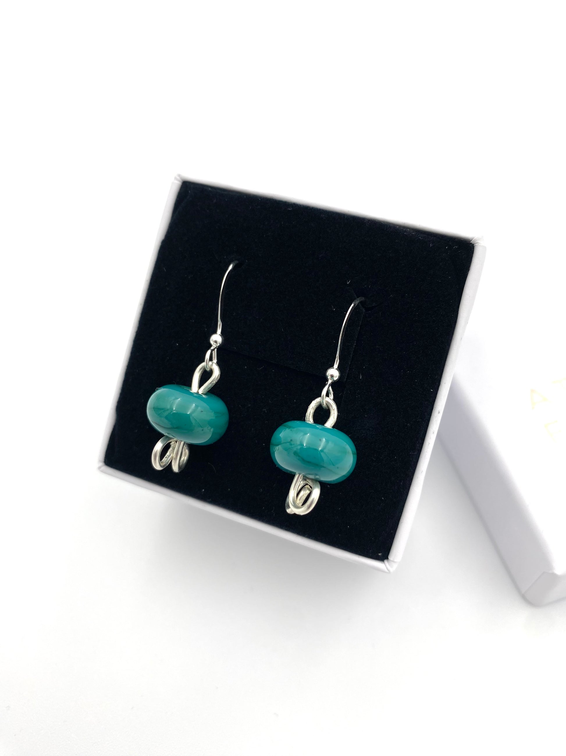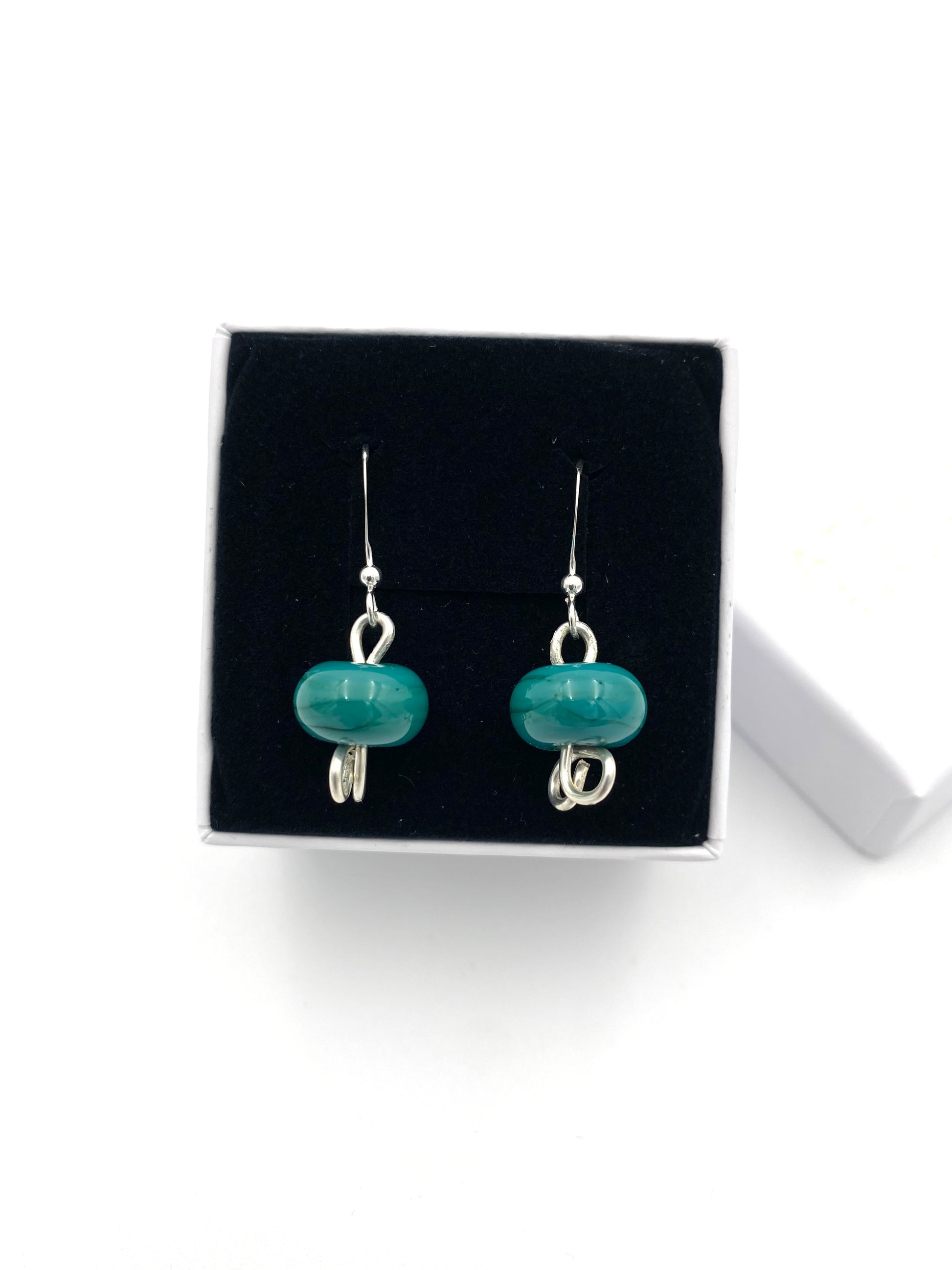 Örhängen i 925 silver med lampworkpärlor.